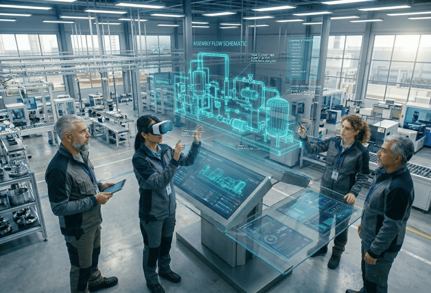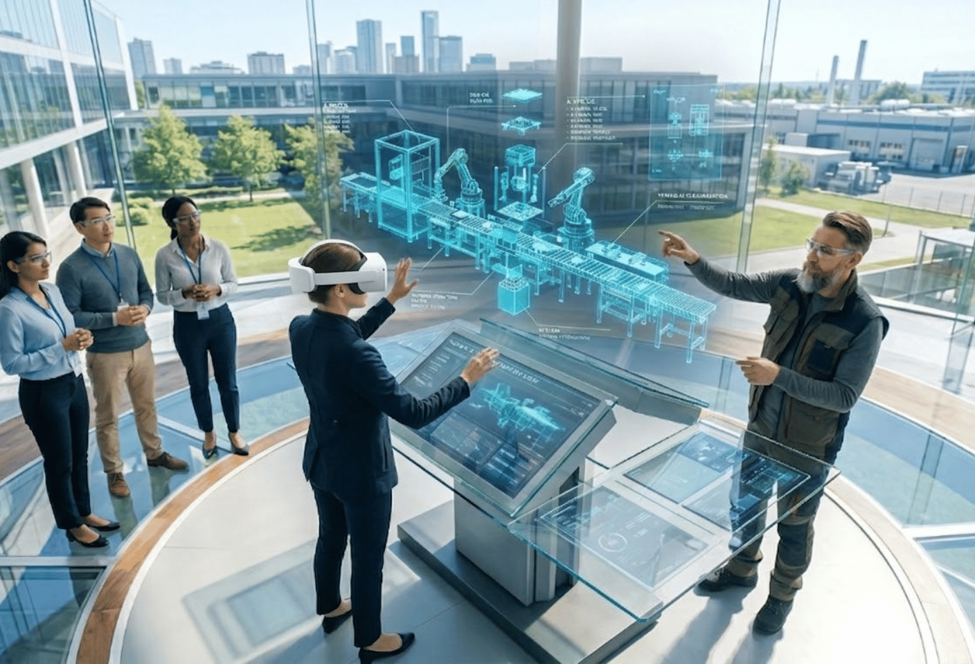 Imagine a potential buyer wearing a VR headset and entering your factory virtually. They can explore:
